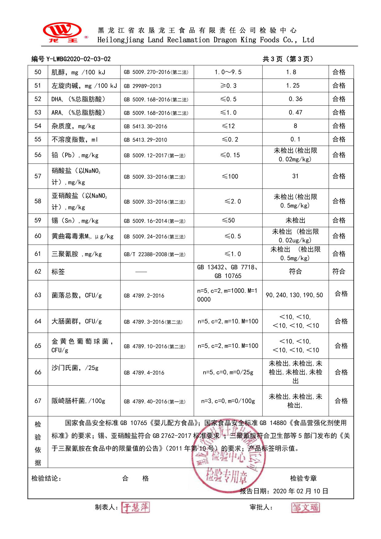 2020年(nián)02月(yuè)份優加恩嬰兒(ér)配方奶粉100克