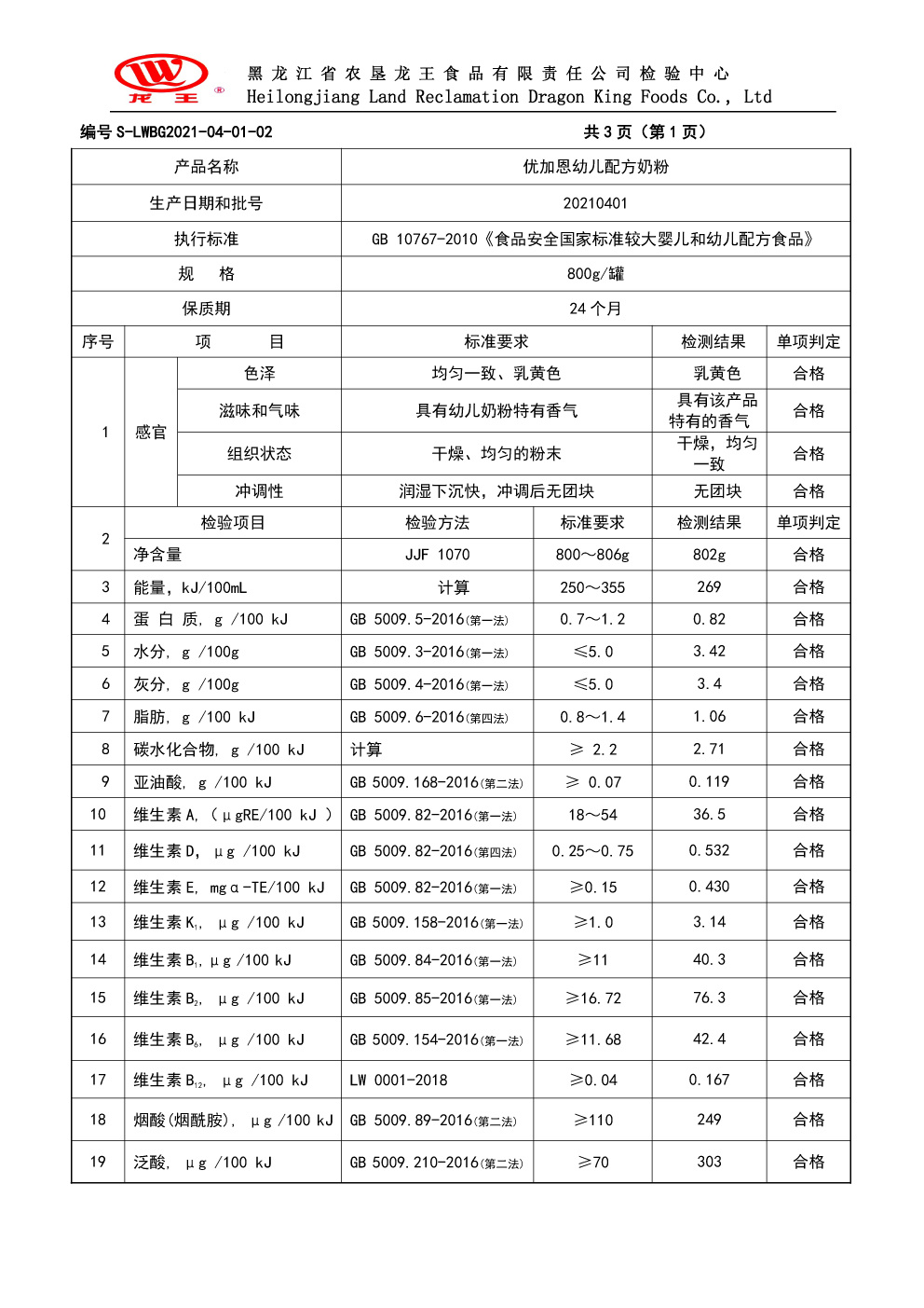 2021年(nián)4月(yuè)份優加恩幼兒(ér)配方奶粉800g