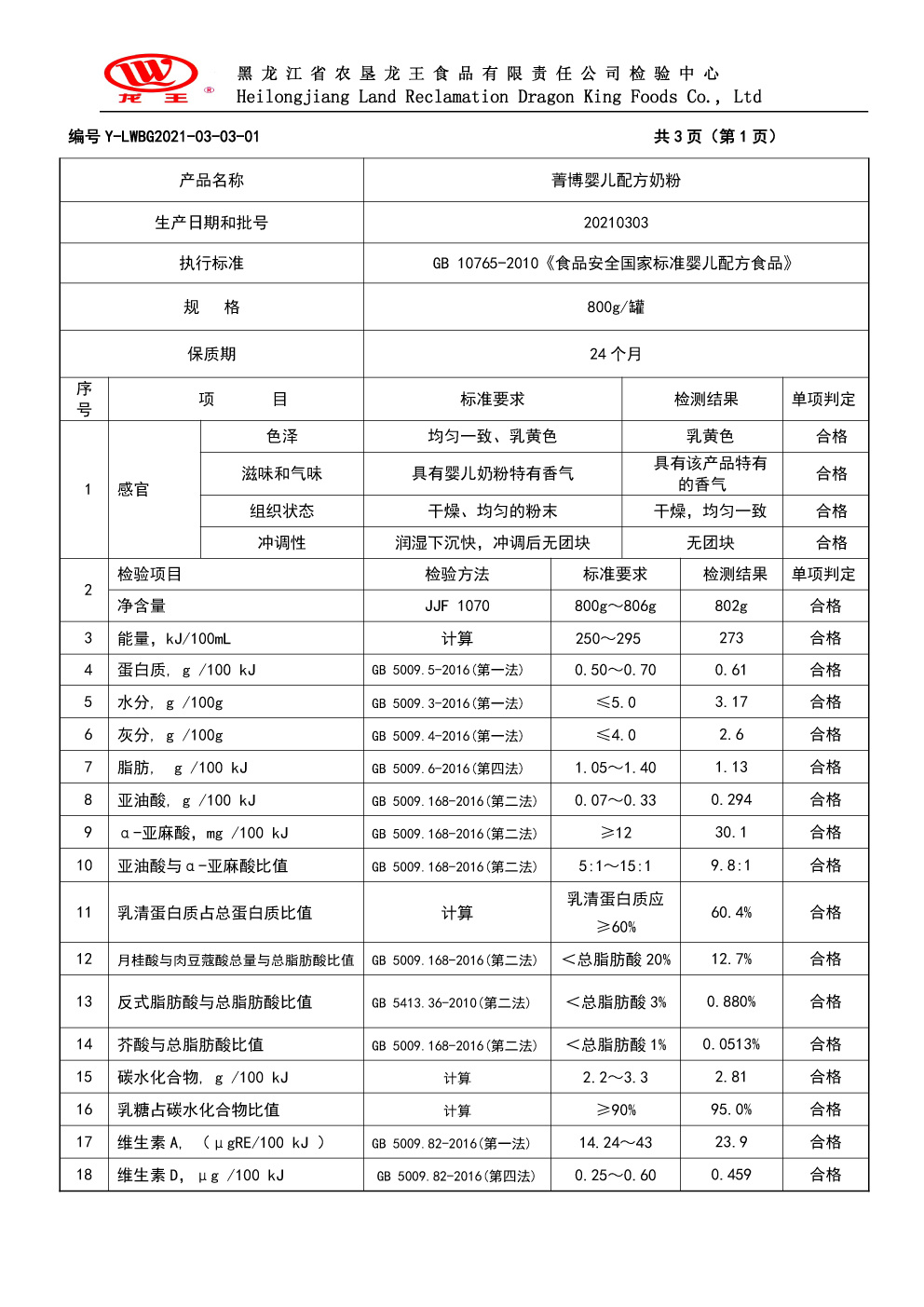 2021年(nián)3月(yuè)份菁博嬰兒(ér)配方奶粉800g