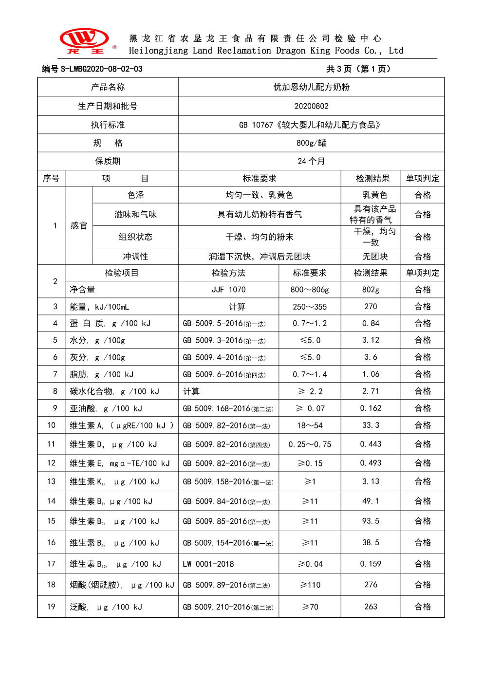 2020年(nián)8月(yuè)份優加恩幼兒(ér)配方奶粉800g