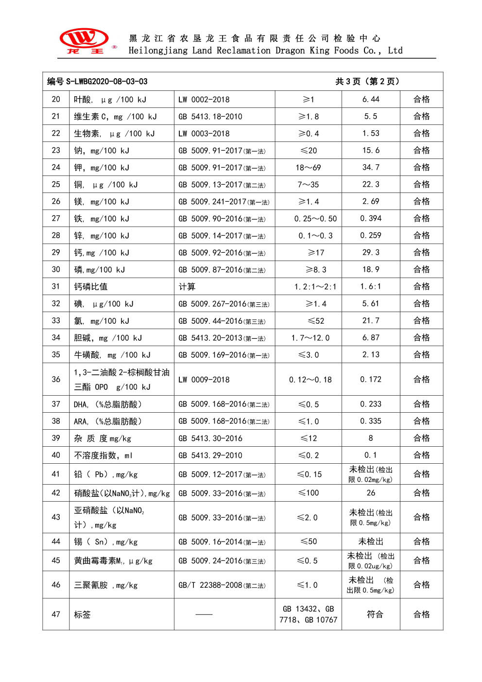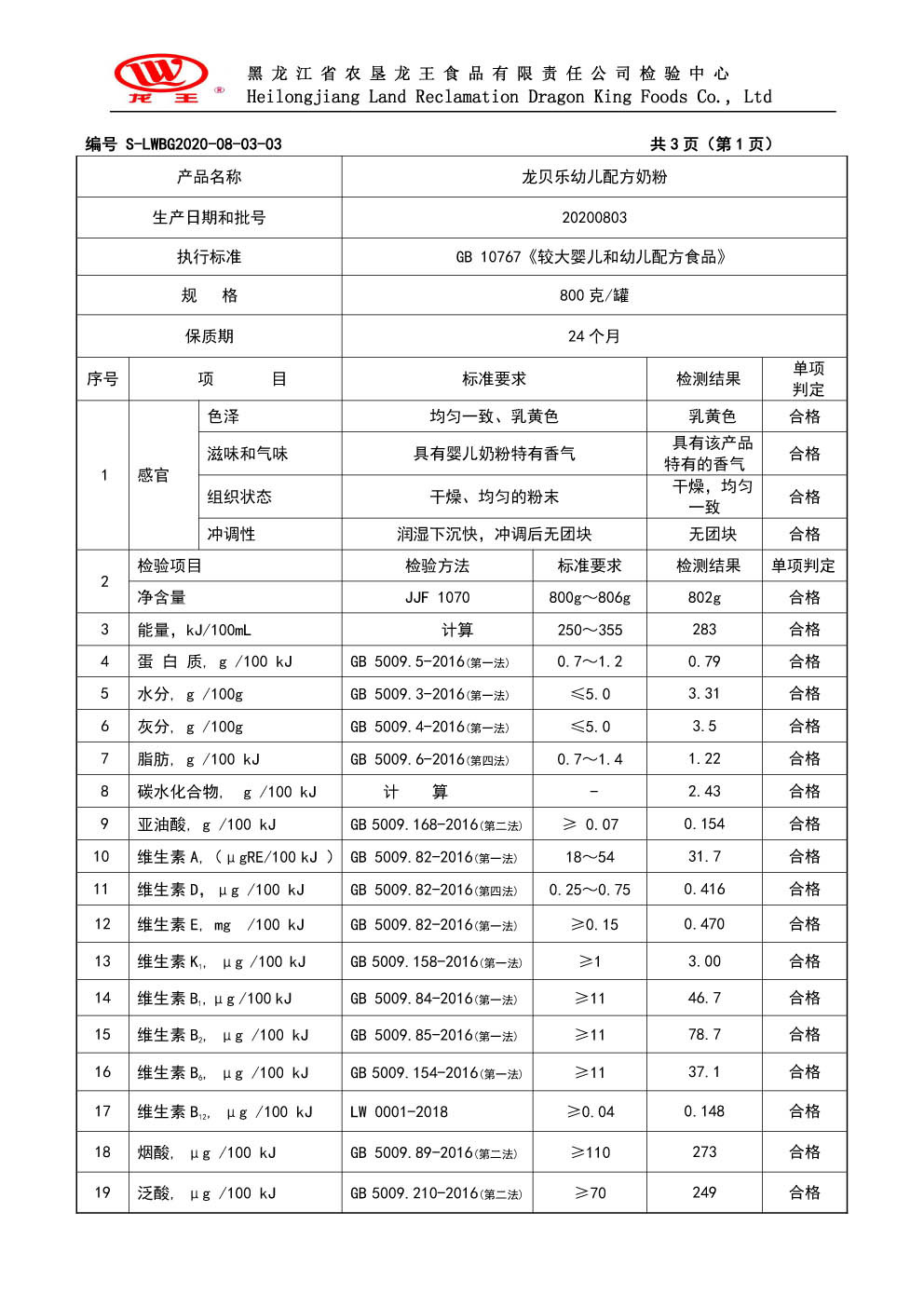 2020年(nián)8月(yuè)份龍貝樂(yuè)幼兒(ér)配方奶粉800g