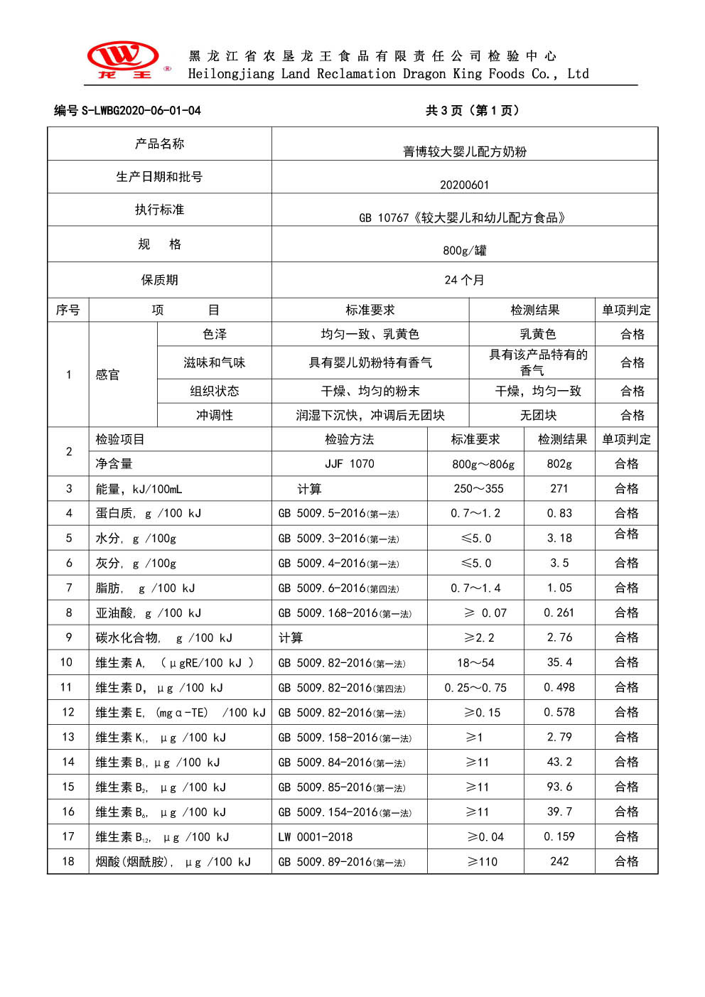 2020年(nián)6月(yuè)份菁博較大(dà)嬰兒(ér)配方奶粉800克