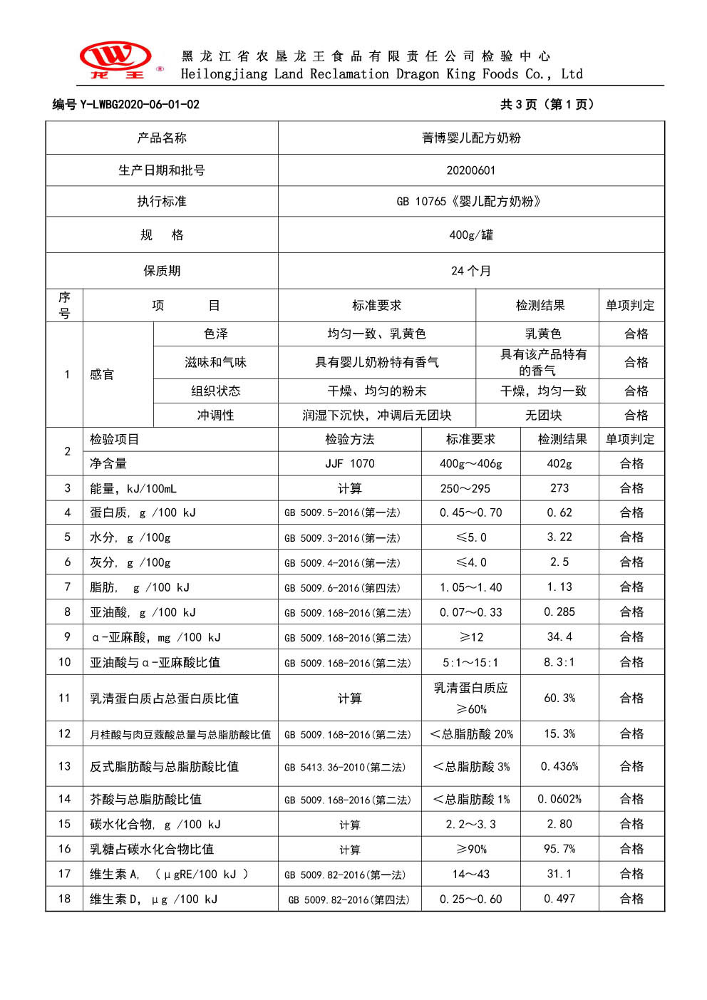 2020年(nián)6月(yuè)份菁博嬰兒(ér)配方奶粉400克