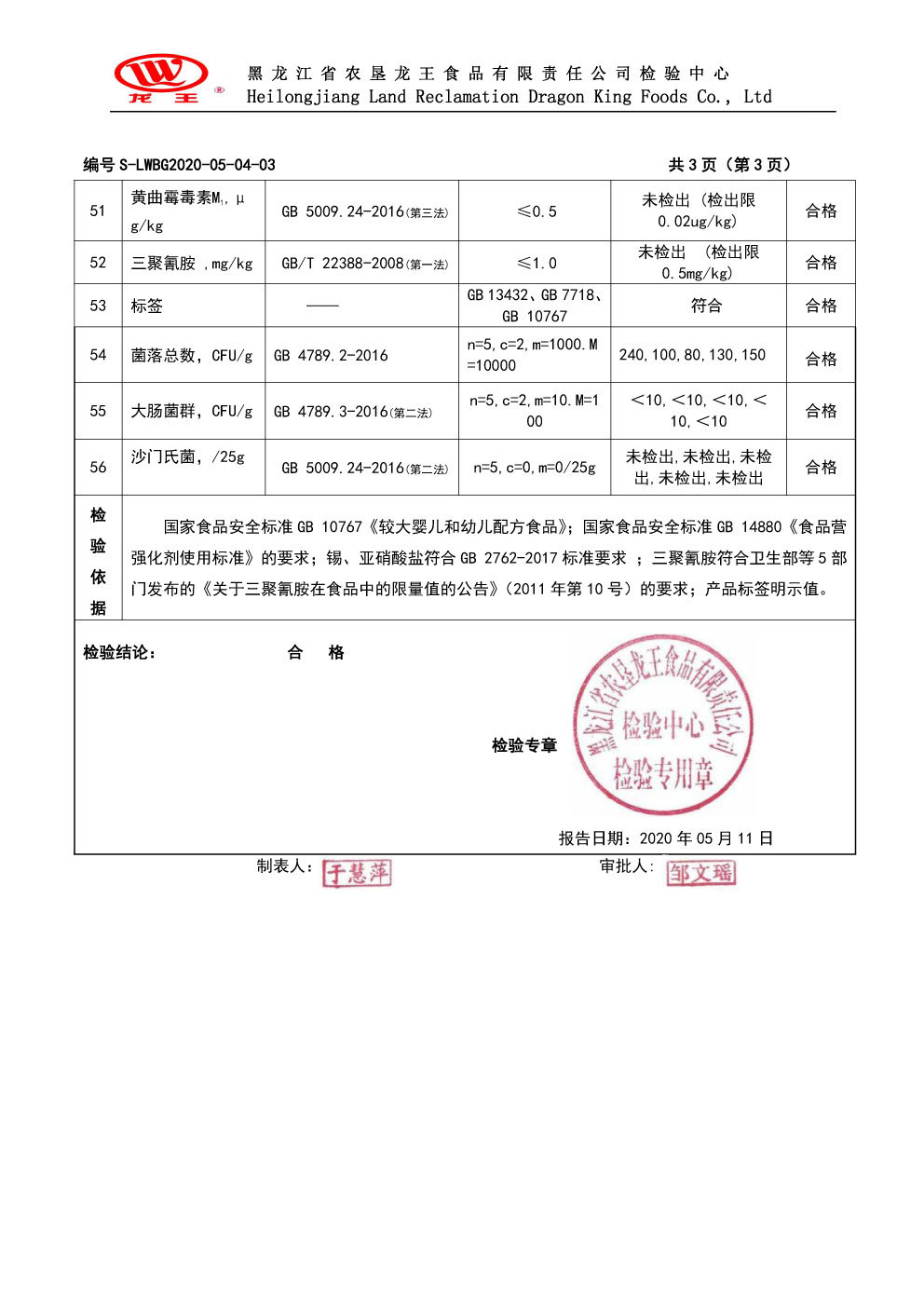 2020年(nián)5月(yuè)份優加恩較大(dà)嬰兒(ér)配方奶粉800克