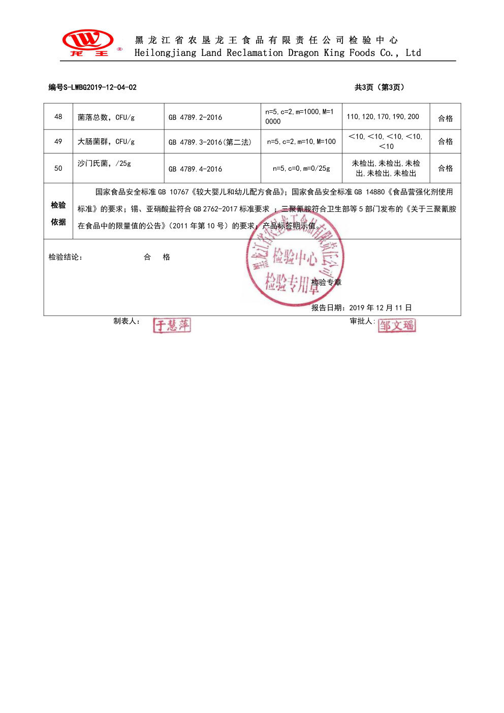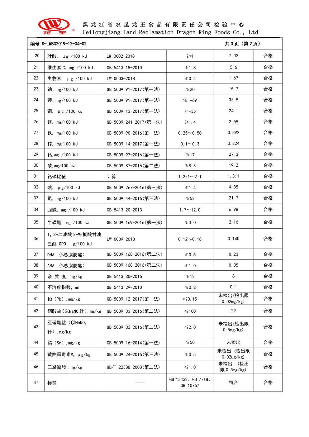 2019年(nián)12月(yuè)份龍貝樂(yuè)較大(dà)嬰兒(ér)配方奶粉800克