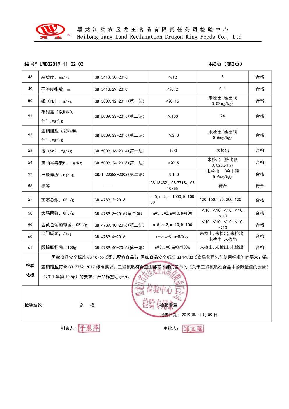 2019年(nián)11月(yuè)份龍貝樂(yuè)嬰兒(ér)配方奶粉800克