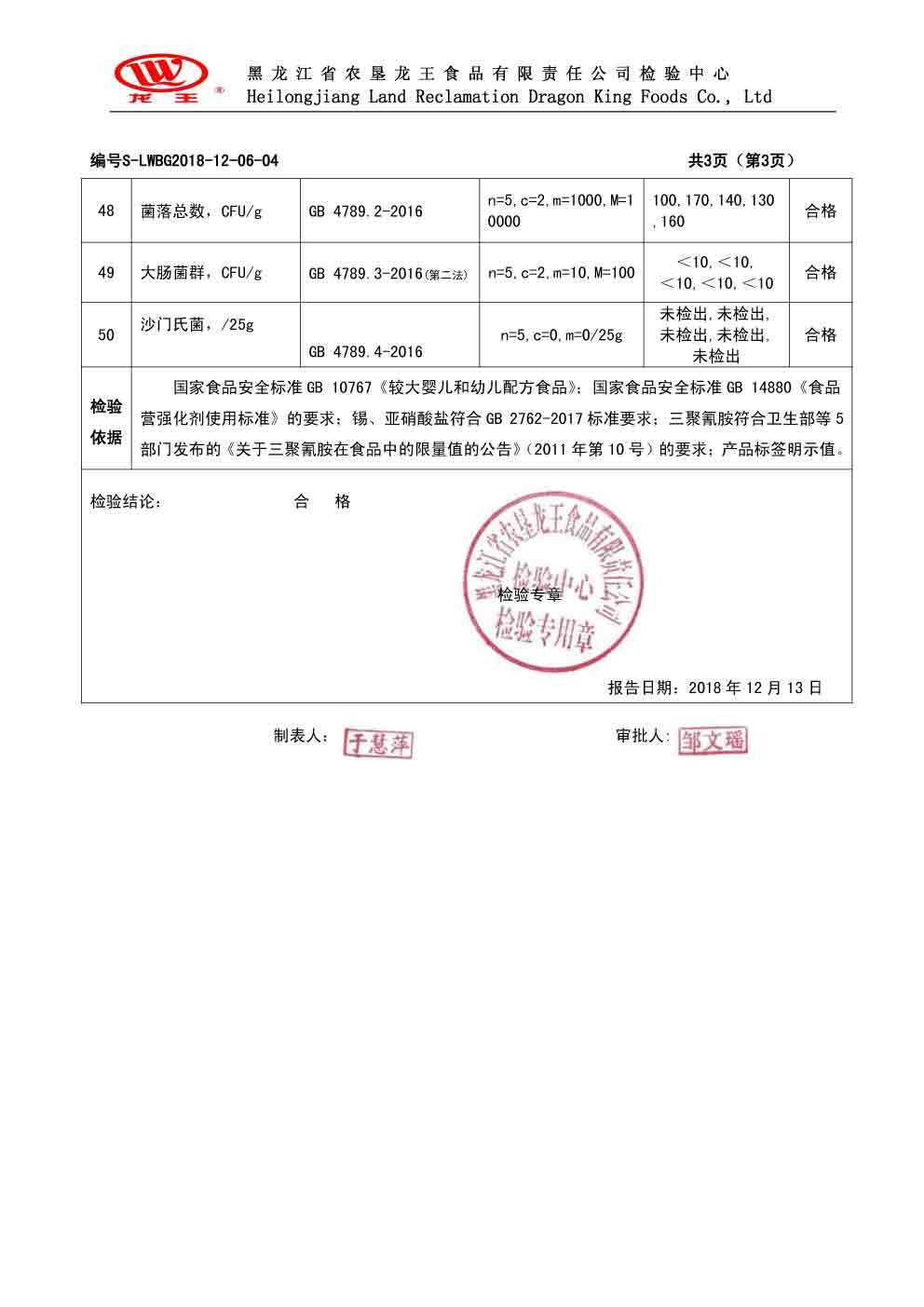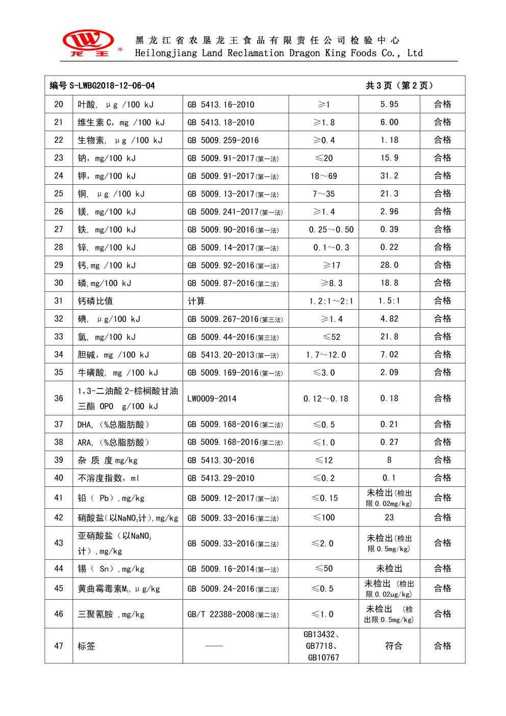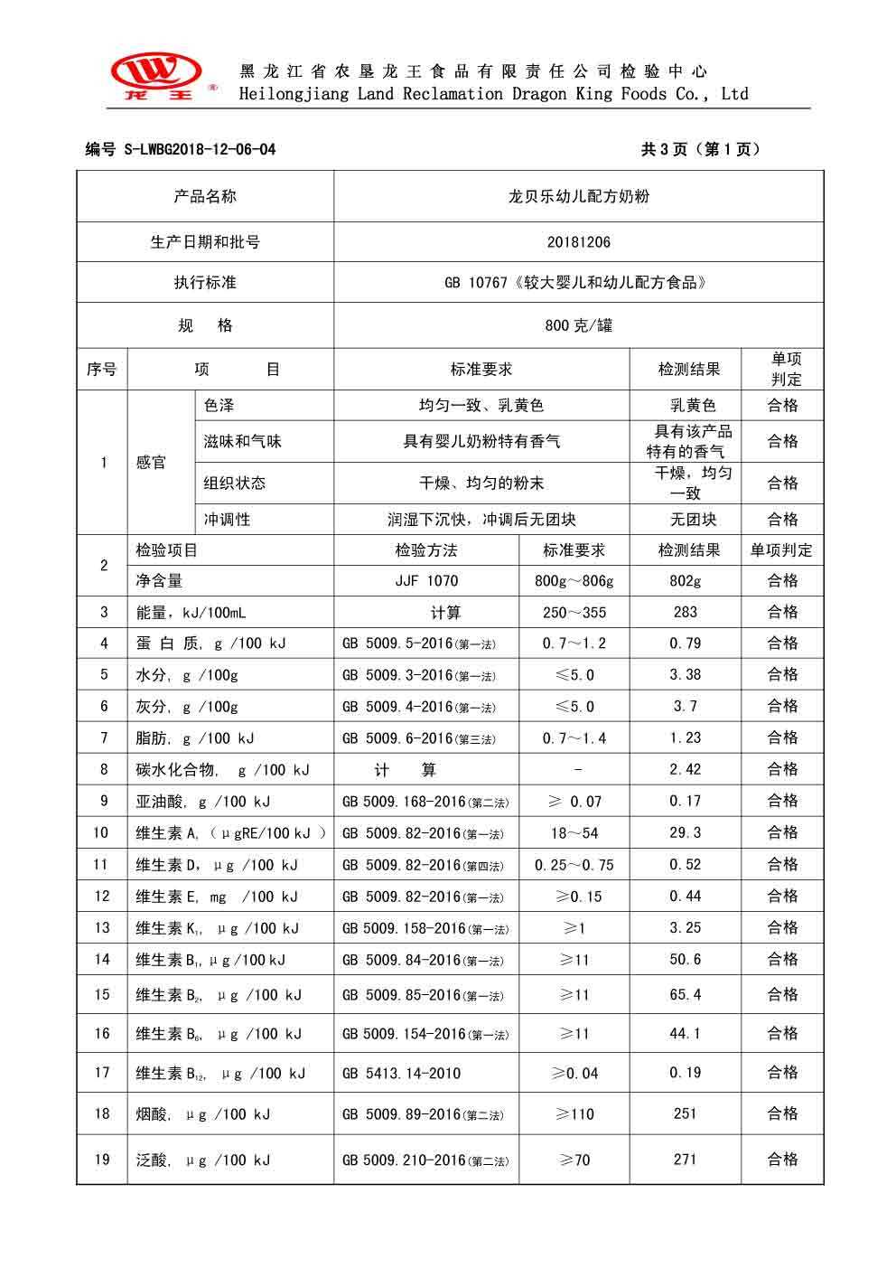 2018年(nián)12月(yuè)份龍貝樂(yuè)幼兒(ér)配方奶粉800克
