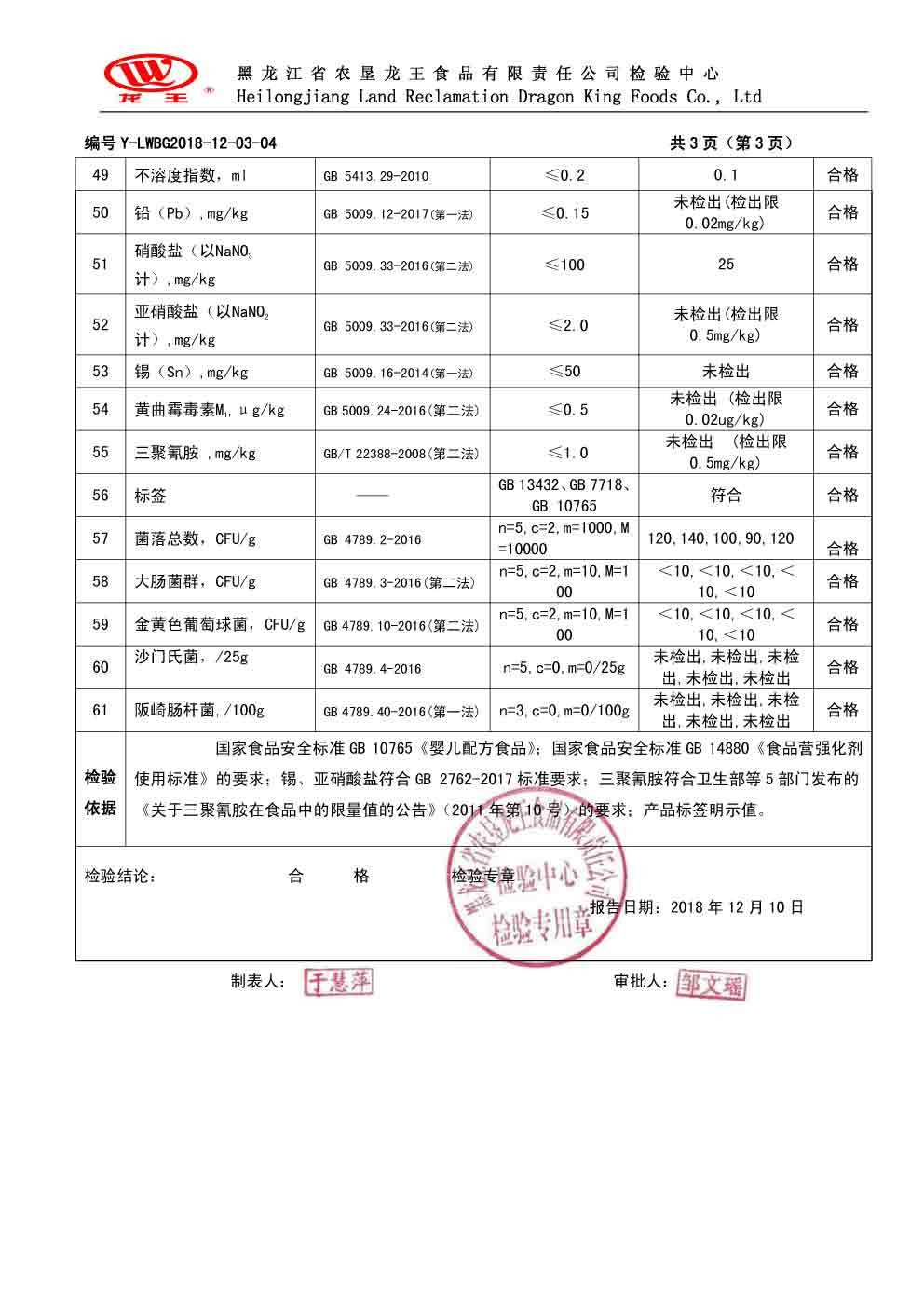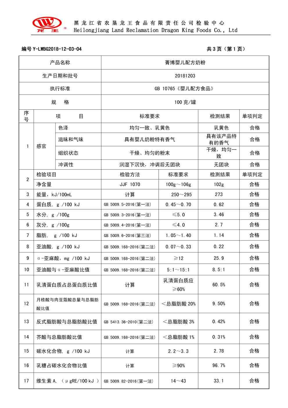 2018年(nián)12月(yuè)份菁博嬰兒(ér)配方奶粉100克