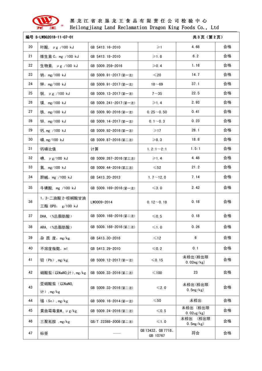 2018年(nián)11月(yuè)份龍貝樂(yuè)較大(dà)嬰兒(ér)配方奶粉800克