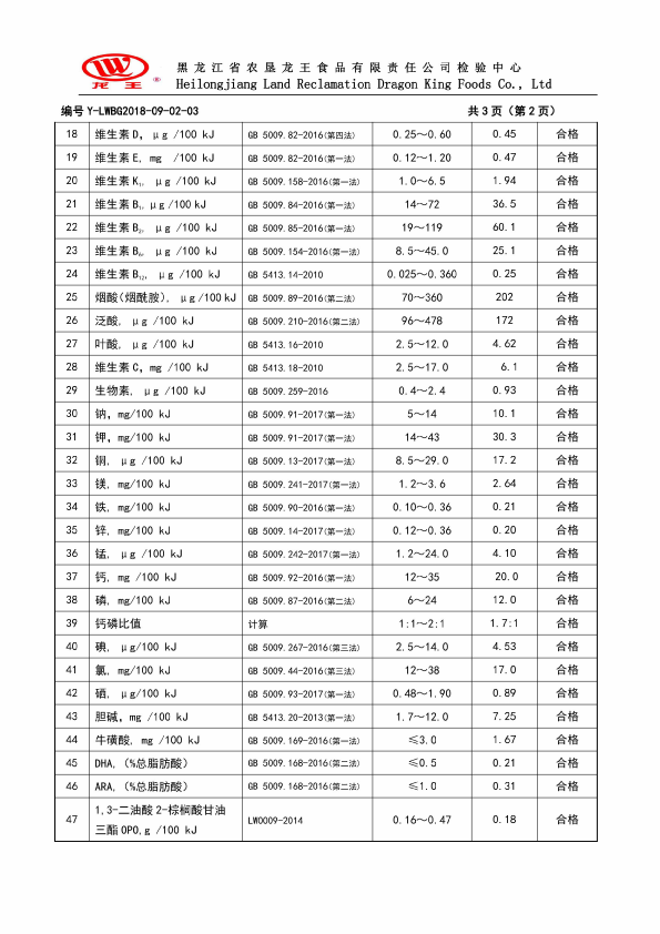 2018年(nián)9月(yuè)份龍貝樂(yuè)嬰兒(ér)配方奶粉800克