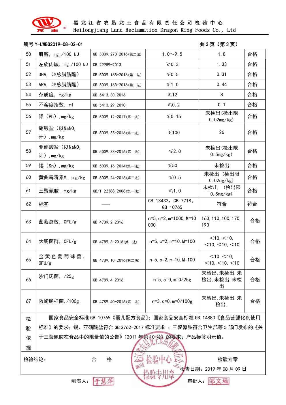 2019年(nián)8月(yuè)份優加恩嬰兒(ér)配方奶粉100克