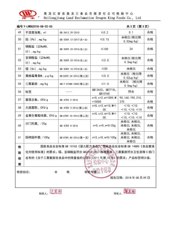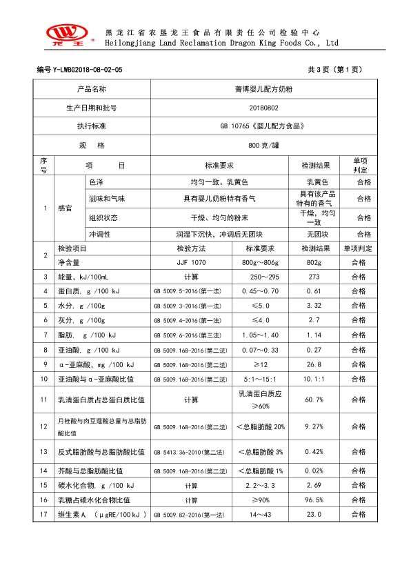 2018年(nián)8月(yuè)份菁博嬰兒(ér)配方奶粉800克