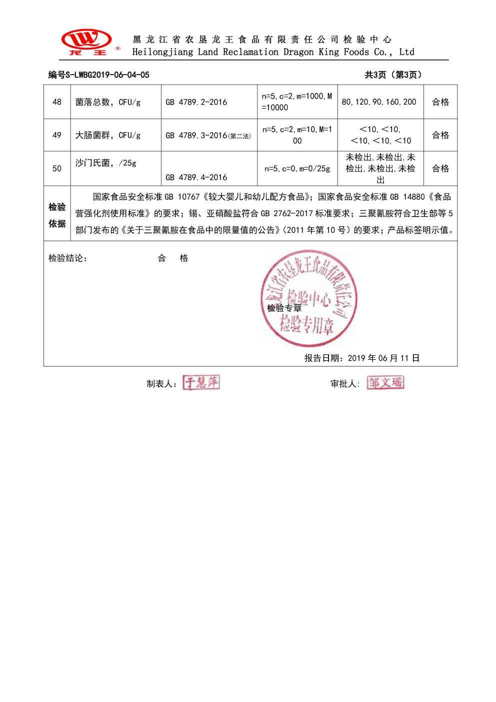 2019年(nián)6月(yuè)份龍貝樂(yuè)幼兒(ér)配方奶粉800克