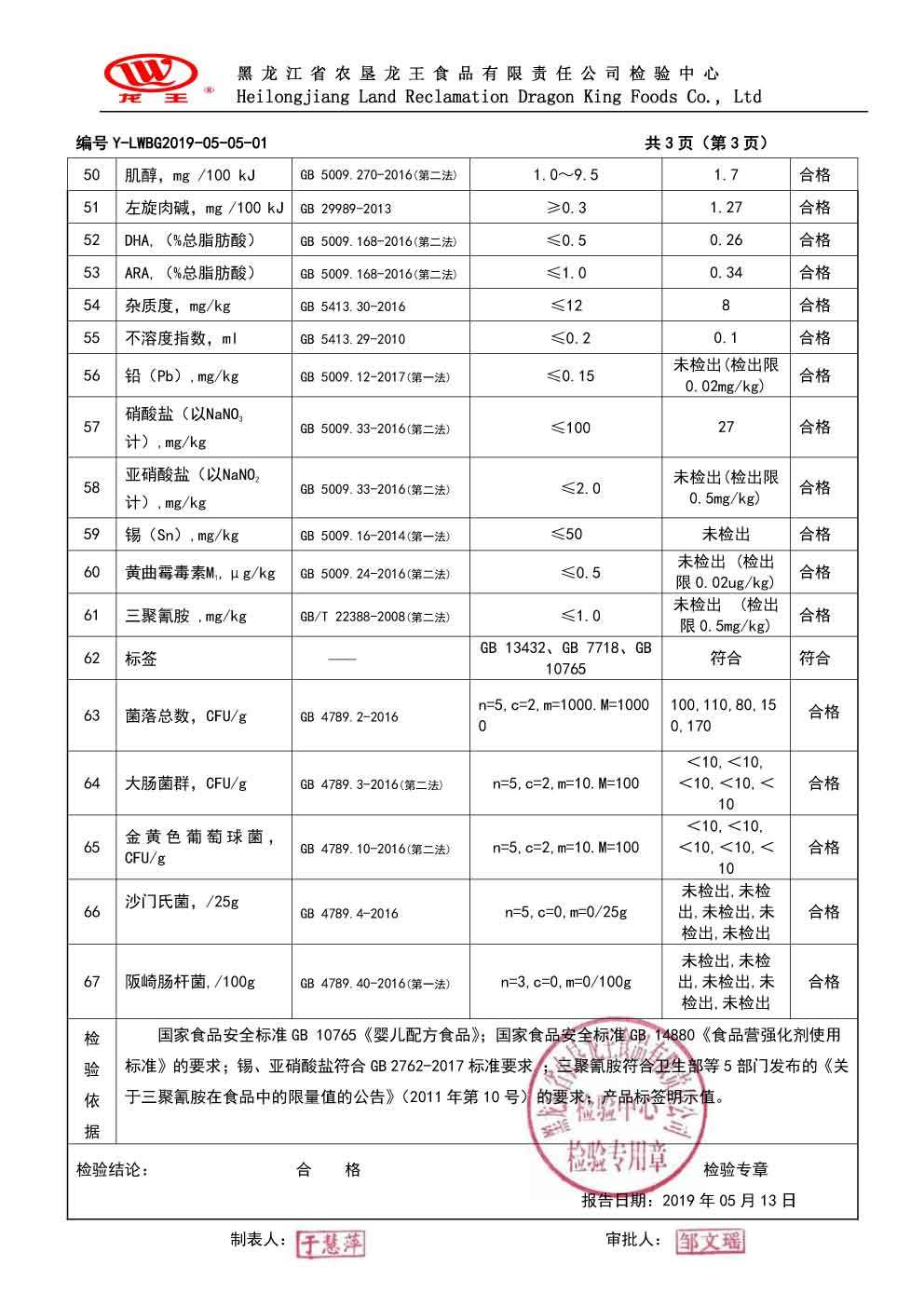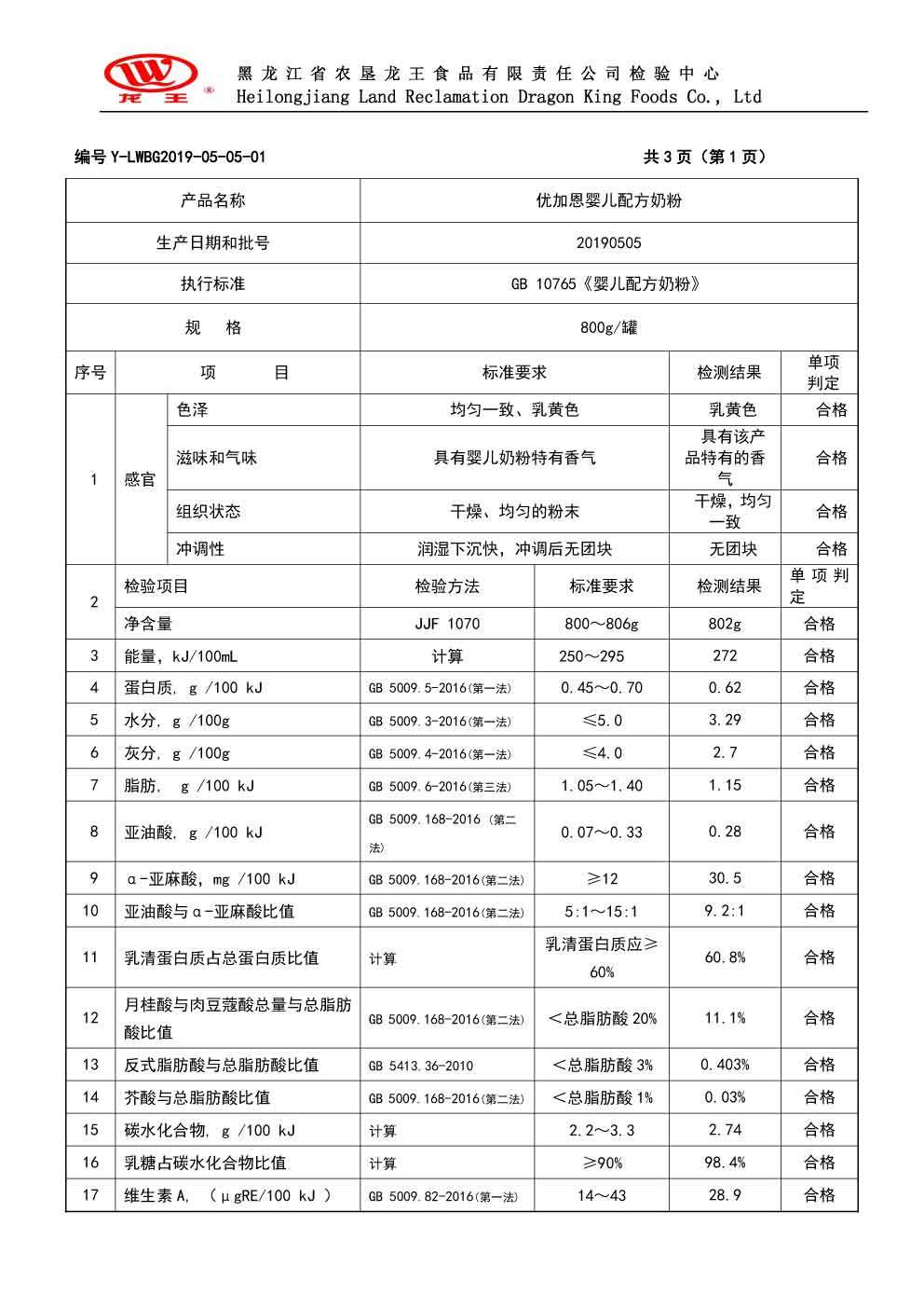 2019年(nián)5月(yuè)份優加恩嬰兒(ér)配方奶粉800克