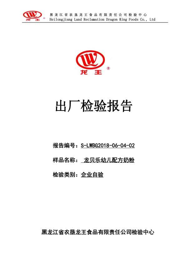 2018年(nián)6月(yuè)份龍貝樂(yuè)幼兒(ér)配方奶粉800克