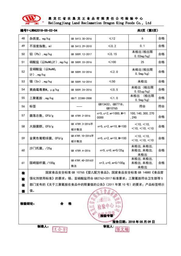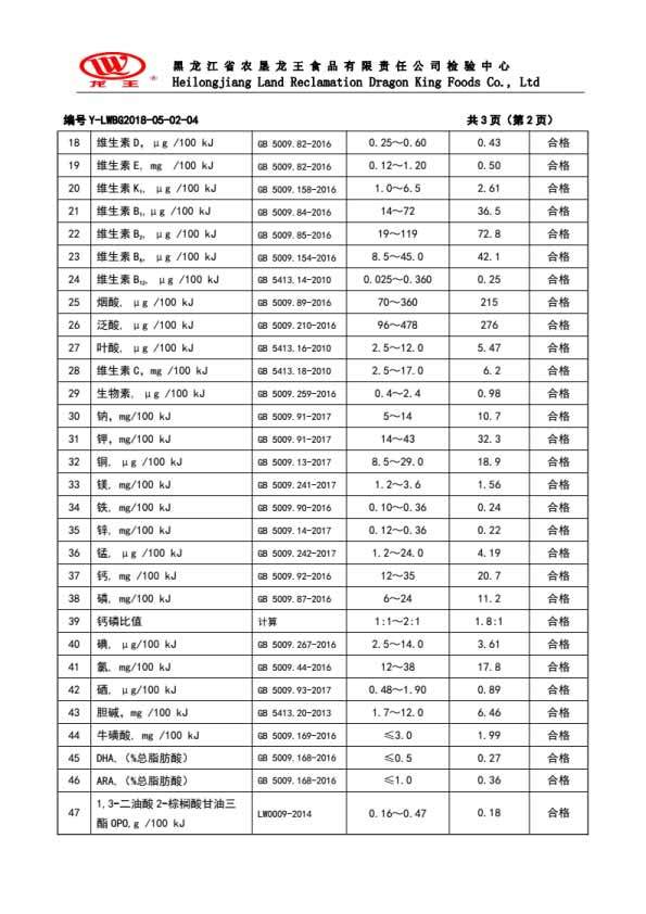 2018年(nián)5月(yuè)份龍貝樂(yuè)嬰兒(ér)配方奶粉100克