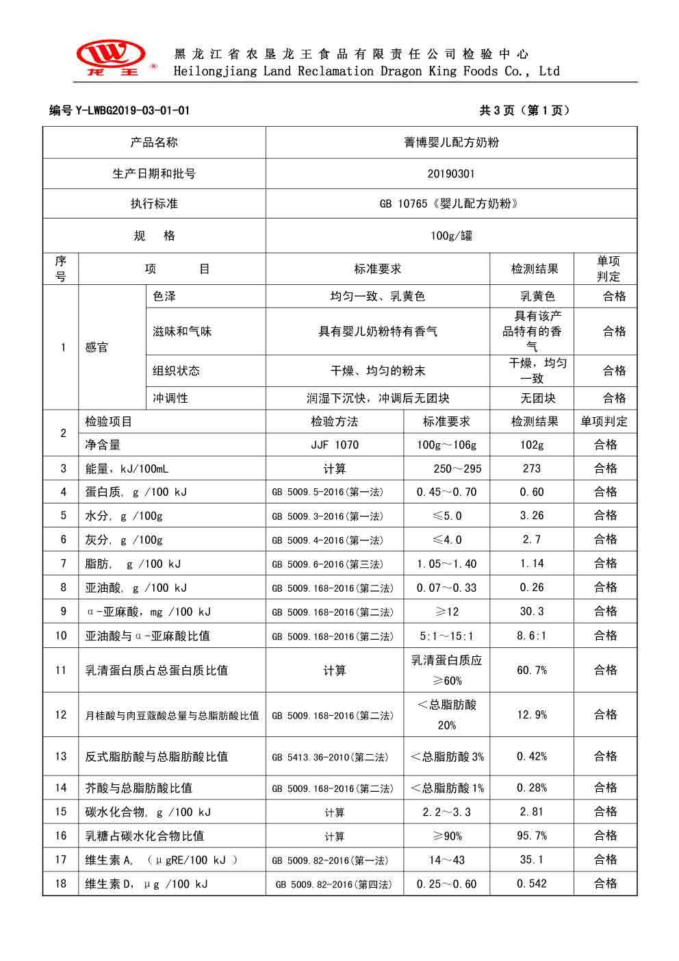 2019年(nián)3月(yuè)份菁博嬰兒(ér)配方奶粉100克