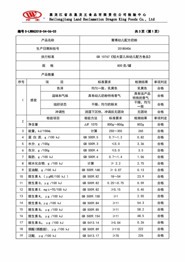 2018年(nián)4月(yuè)份菁博幼兒(ér)配方奶粉800克