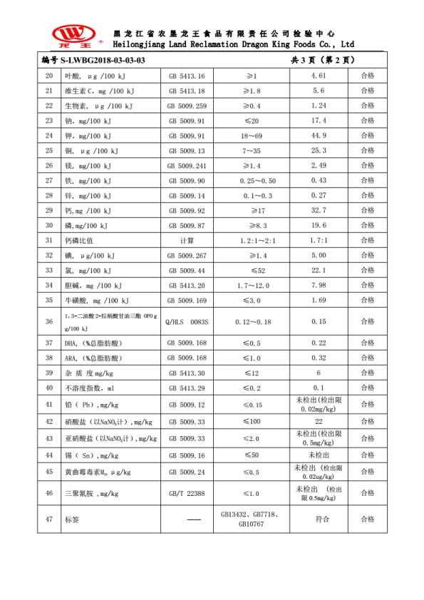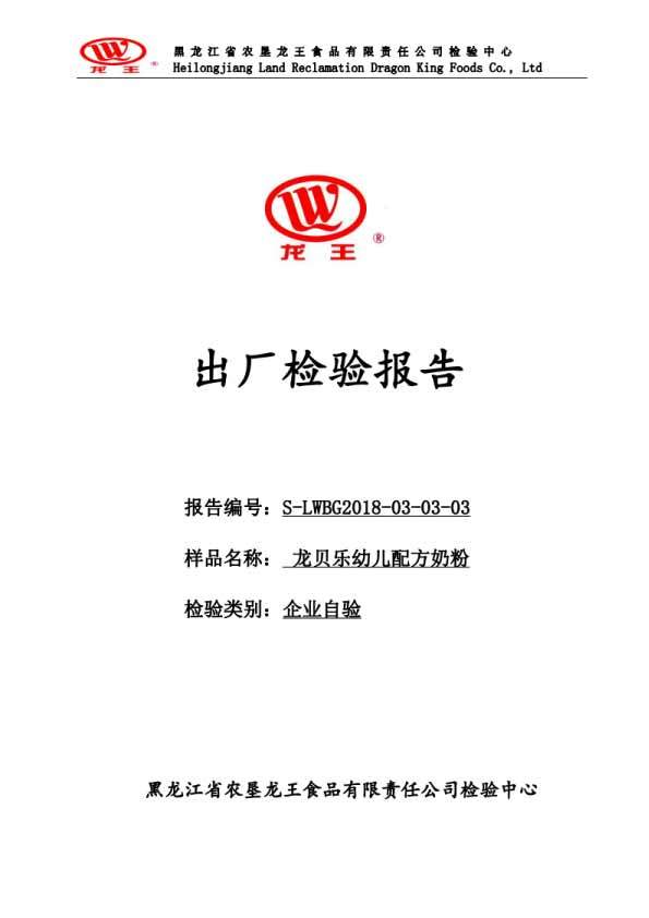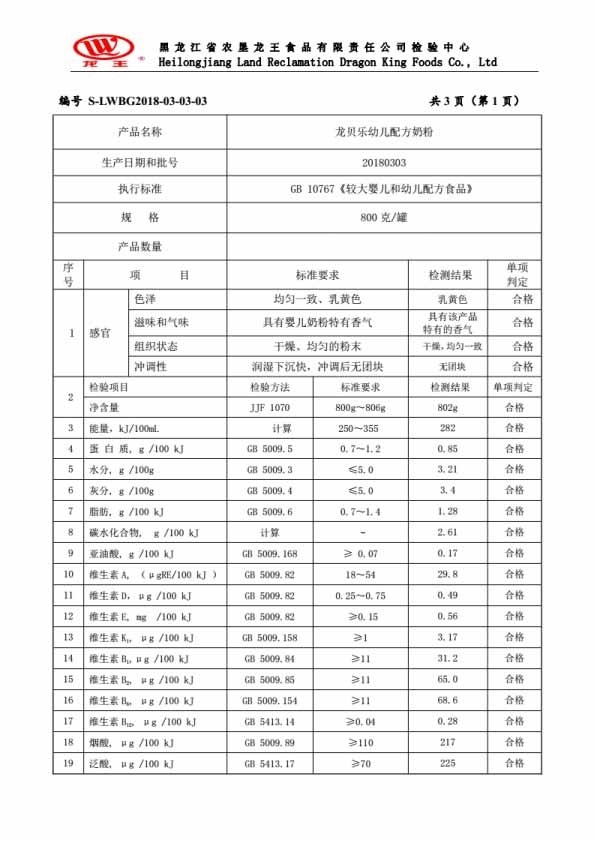 2018年(nián)3月(yuè)份龍貝樂(yuè)幼兒(ér)配方奶粉800克