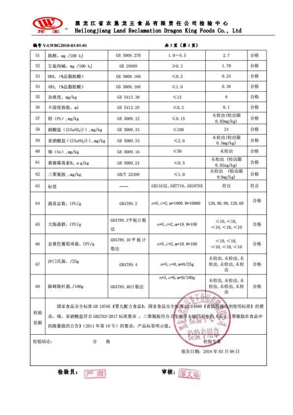 2018年(nián)3月(yuè)份優加恩嬰兒(ér)配方奶粉900克