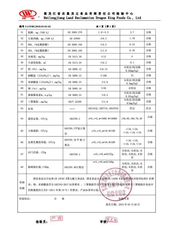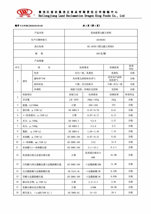 2018年(nián)3月(yuè)份優加恩嬰兒(ér)配方奶粉100克
