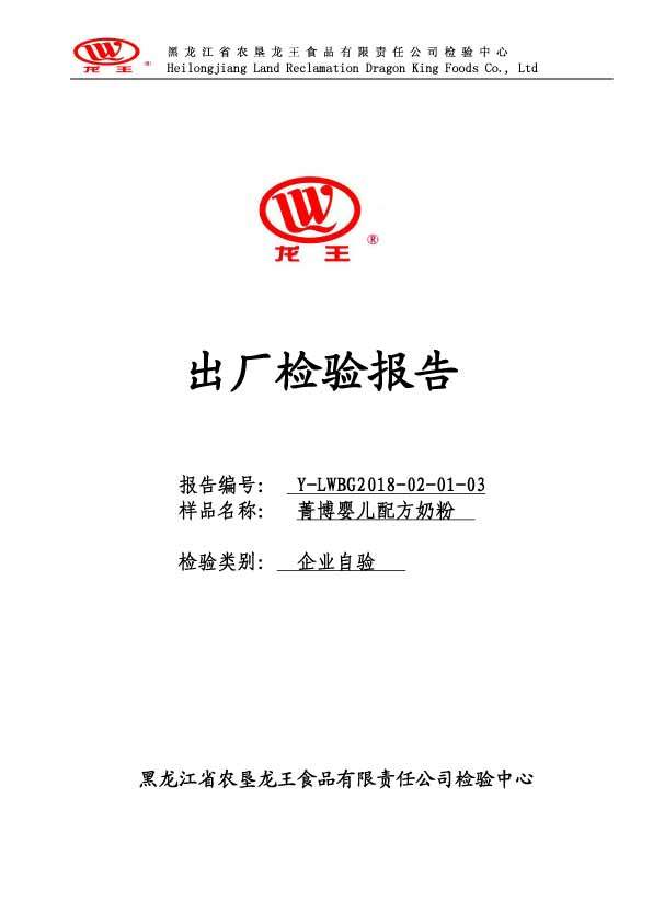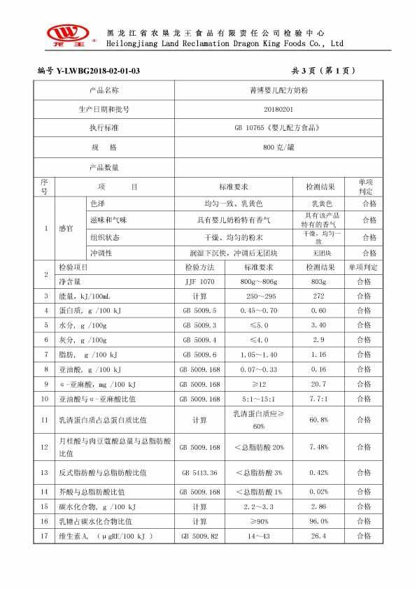 2018年(nián)02月(yuè)份菁博嬰兒(ér)配方奶粉800克