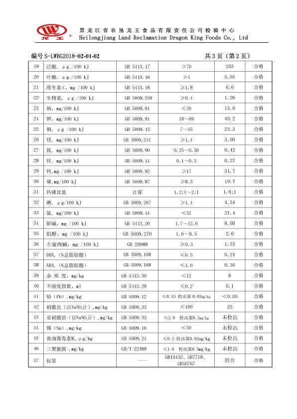 2018年(nián)02月(yuè)份菁博較大(dà)嬰兒(ér)配方奶粉800克