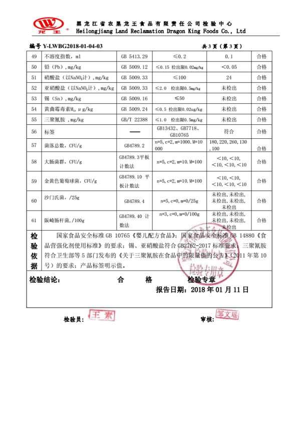 2018年(nián)01月(yuè)份菁博嬰兒(ér)配方奶粉100克