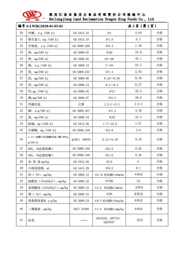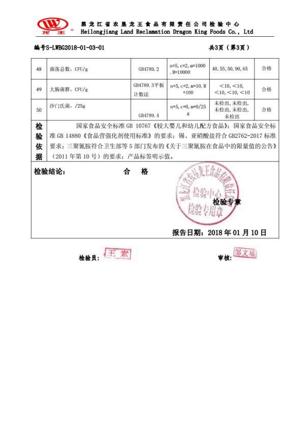 2018年(nián)01月(yuè)份龍貝樂(yuè)幼兒(ér)配方奶粉800克