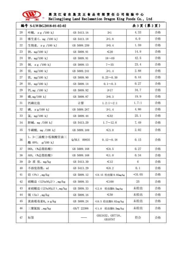 2018年(nián)01月(yuè)份龍貝樂(yuè)較大(dà)嬰兒(ér)配方奶粉800克